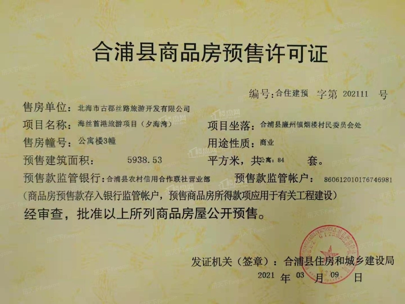 | 合住建预字第202111号 | 2021-3-9 | 3#公寓 |