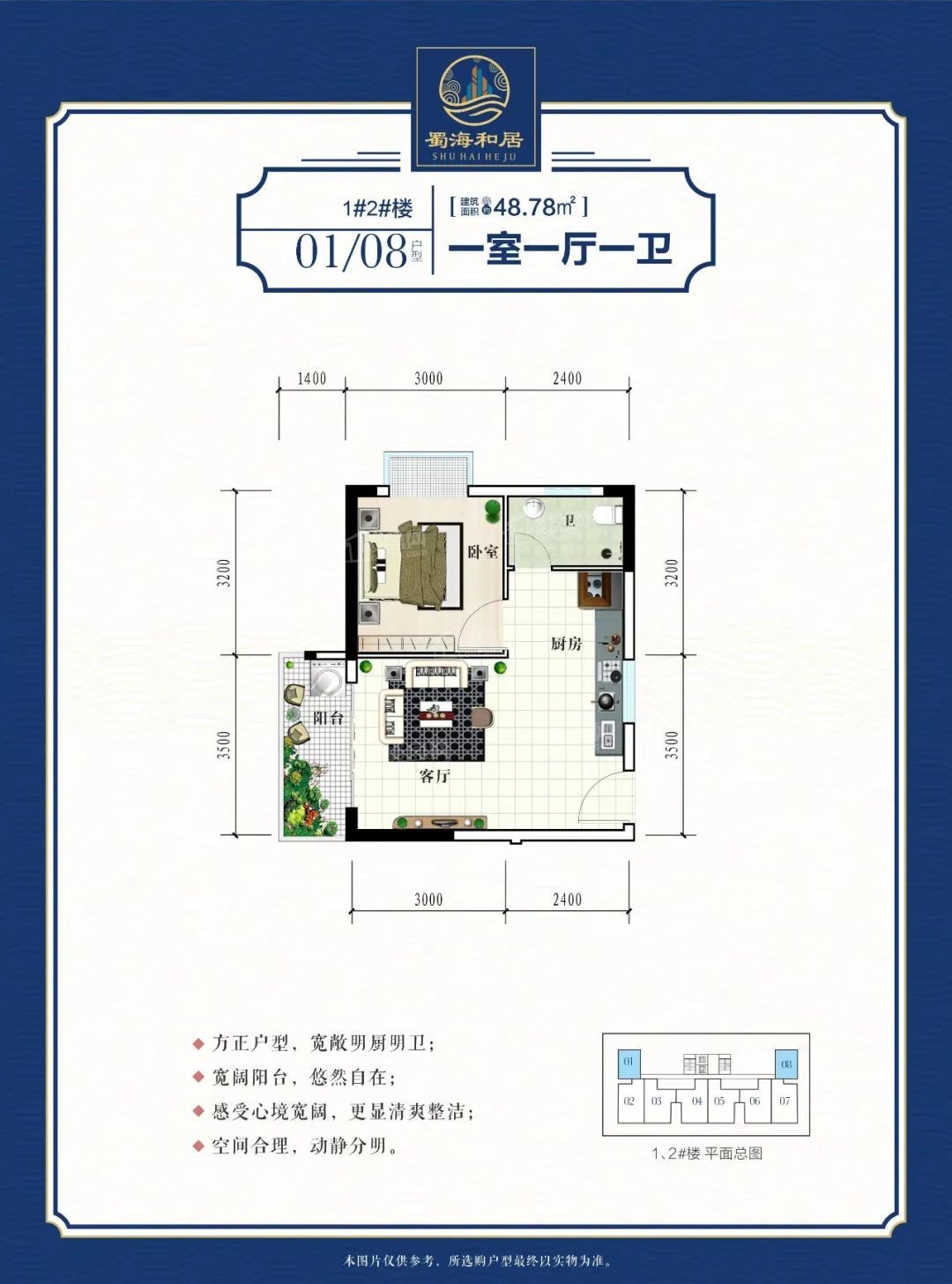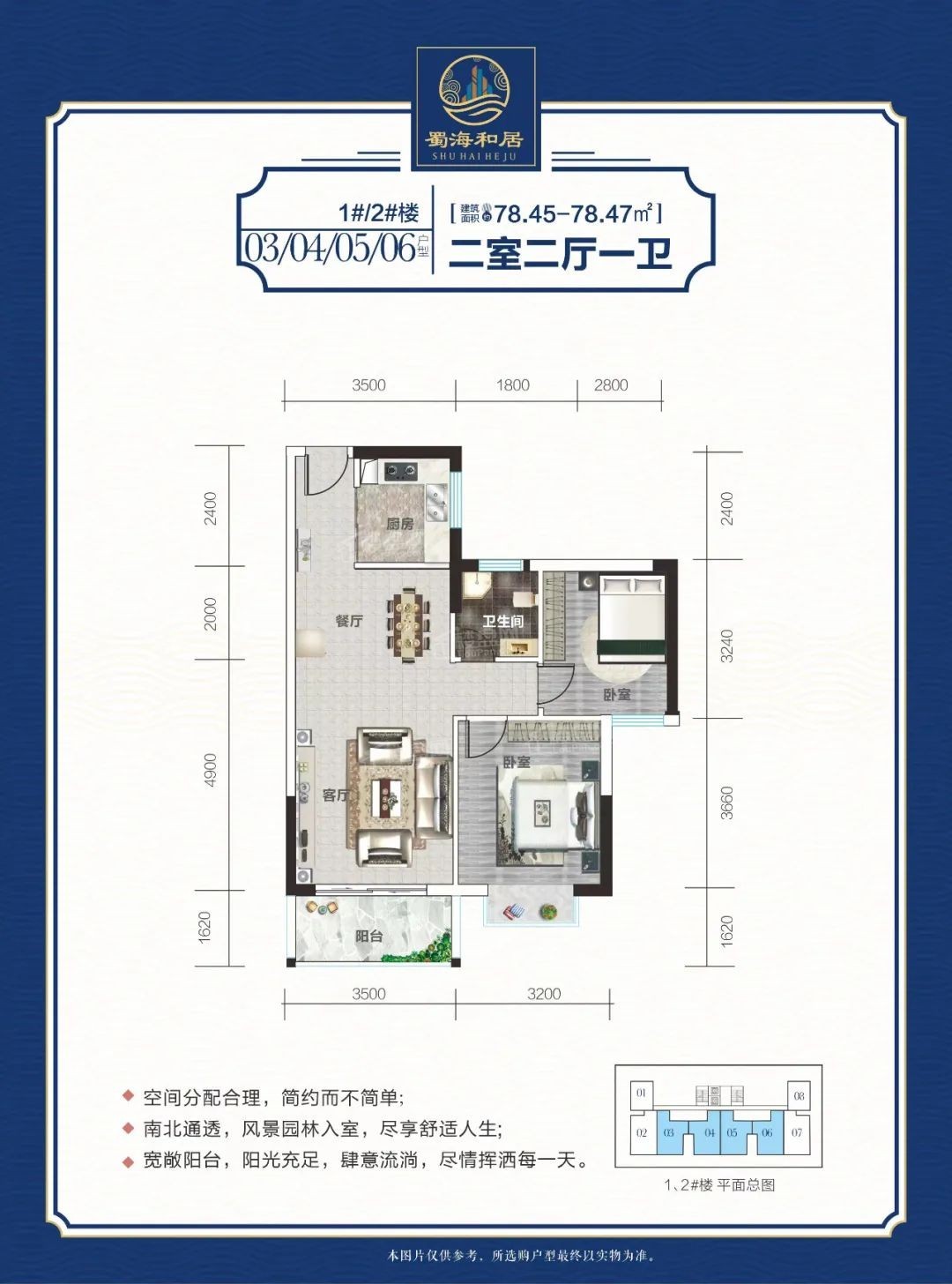 北海海城区楼盘 蜀海和居准现房特惠单价4750元/㎡起,户型韦78平两房两厅。