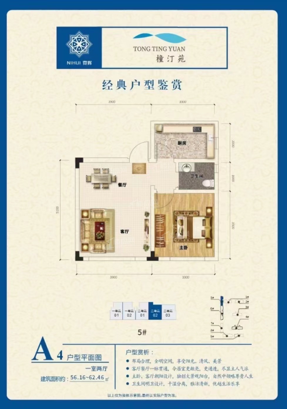 橦汀苑在售5#(总高6层、一梯二户)、6#(总高7层、一梯二户)、7#(总高6层、一梯二户)、8#(总高6层、一梯二户)、9#(总高7层、一单元一梯二户,二单元一梯一户),户型56-97-113-142-125㎡一房至五房板楼通透,毛坯均价5500元/㎡,2023年10月交付。